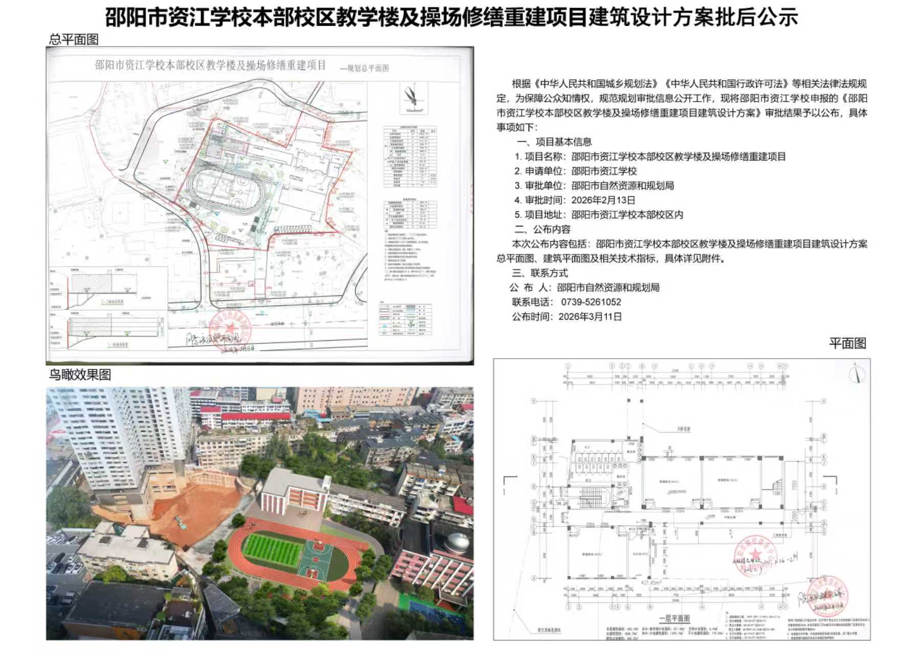 邵阳市资江学校本部校区教学楼及操场修缮重建项目建筑设计方案批后公示